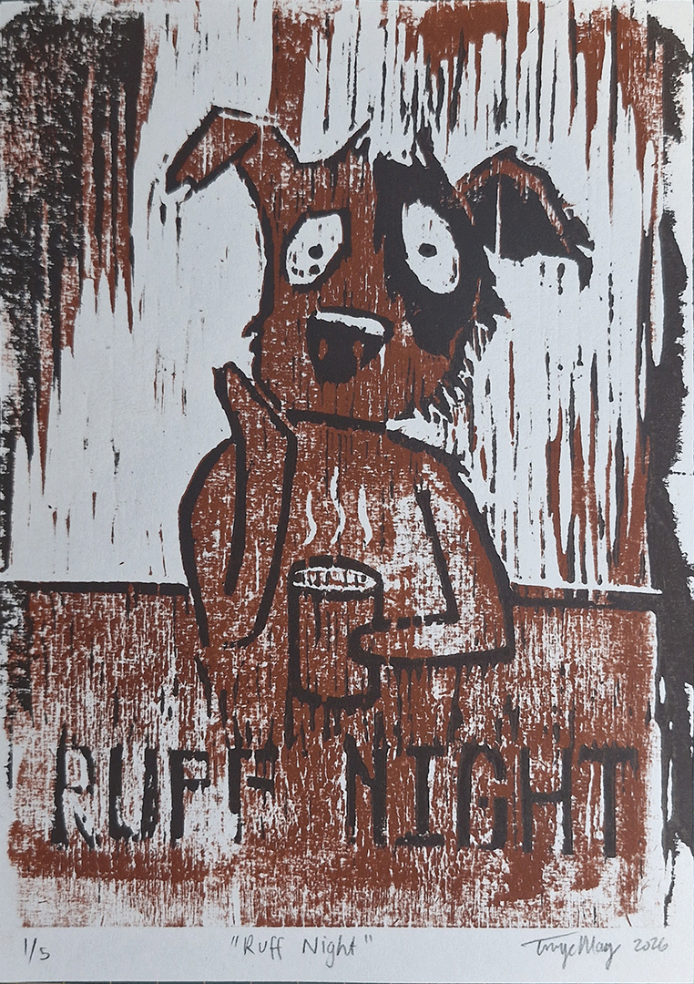 Reduction Woodcut Print: Ruff Night 1/5